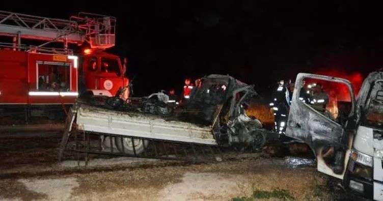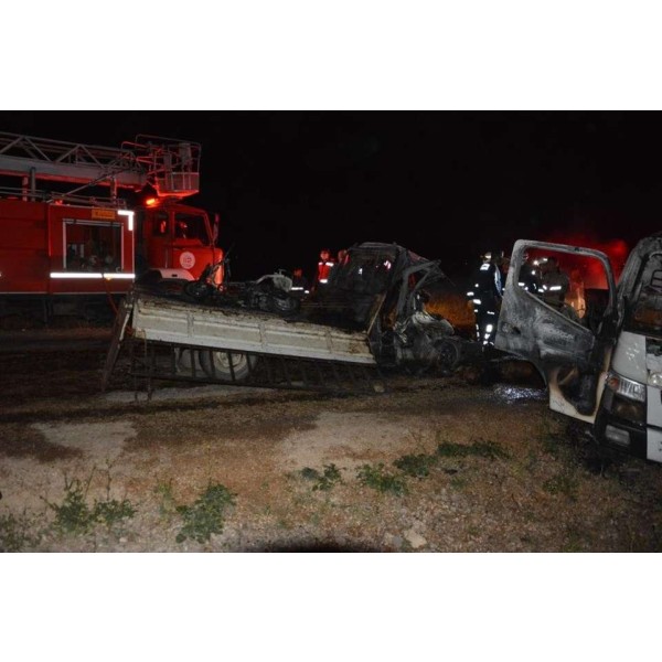 Yola fırlayan köpeğe çarpmak istemeyen araçlar kaza yaptı. 2 kişi kaza sonrası çıkan yanında feci şekilde can verdi. Antalya Korkuteli'ne bağlı Büyükköy Mahallesi Naldöken karayolunda için çekici ile küçükbaş hayvan yüklü kamyonetin çarpışması sonucu meydana gelen kazada Sabri Kavuk (32) ile İsa İşlek (31) feci şekilde can verdi. Kazanın aniden yola çıkar köpeğin neden olduğu bildirildi. Korkunç kaza kent merkezine 70 kilometre uzakta Korkuteli ilçesi Büyükköy Mahallesi Naldöken yolu üzerinde akşam saatlerinde meydana geldi. Ramazan İ. yönetimindeki idaresindeki çekici ile karşı yönden gelmekte olan küçükbaş hayvan yüklü Sabri Kavuk idaresindeki kamyonet çarpıştı. Çekicide bulunan ve ağır yaralanan H.S. (18) ise sağlık ekiplerince Korkuteli Devlet Hastanesi'ne kaldırıldı. Ekipler, yanarak hayatını kaybeden Kavuk ile İşlek'in cenazelerini yaklaşık bir saat süren çalışmanın ardından sıkıştıkları yerden çıkarabildi. Cenazeler, otopsi işlemi için Antalya Adli Tıp Kurumu morguna götürüldü. Çekici sürücüsü Ramazan İ'nin ise gözaltına alındığı, jandarmadaki işlemlerinin ardından savcılığa sevk edileceği bildirildi. Kaynak : https://x.com/KopekSorunu/status/1463758971572039687 https://www.sabah.com.tr/yasam/yola-cikan-kopek-faciaya-neden-oldu-2-can-kaybi-5489310 https://www.ntv.com.tr/turkiye/antalyada-feci-kaza-2-kisi-yanarak-can-verdi,HWHsV9USx0yqxXnchlCoXA