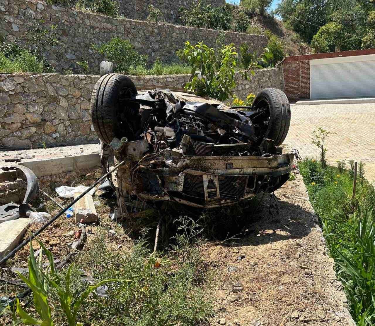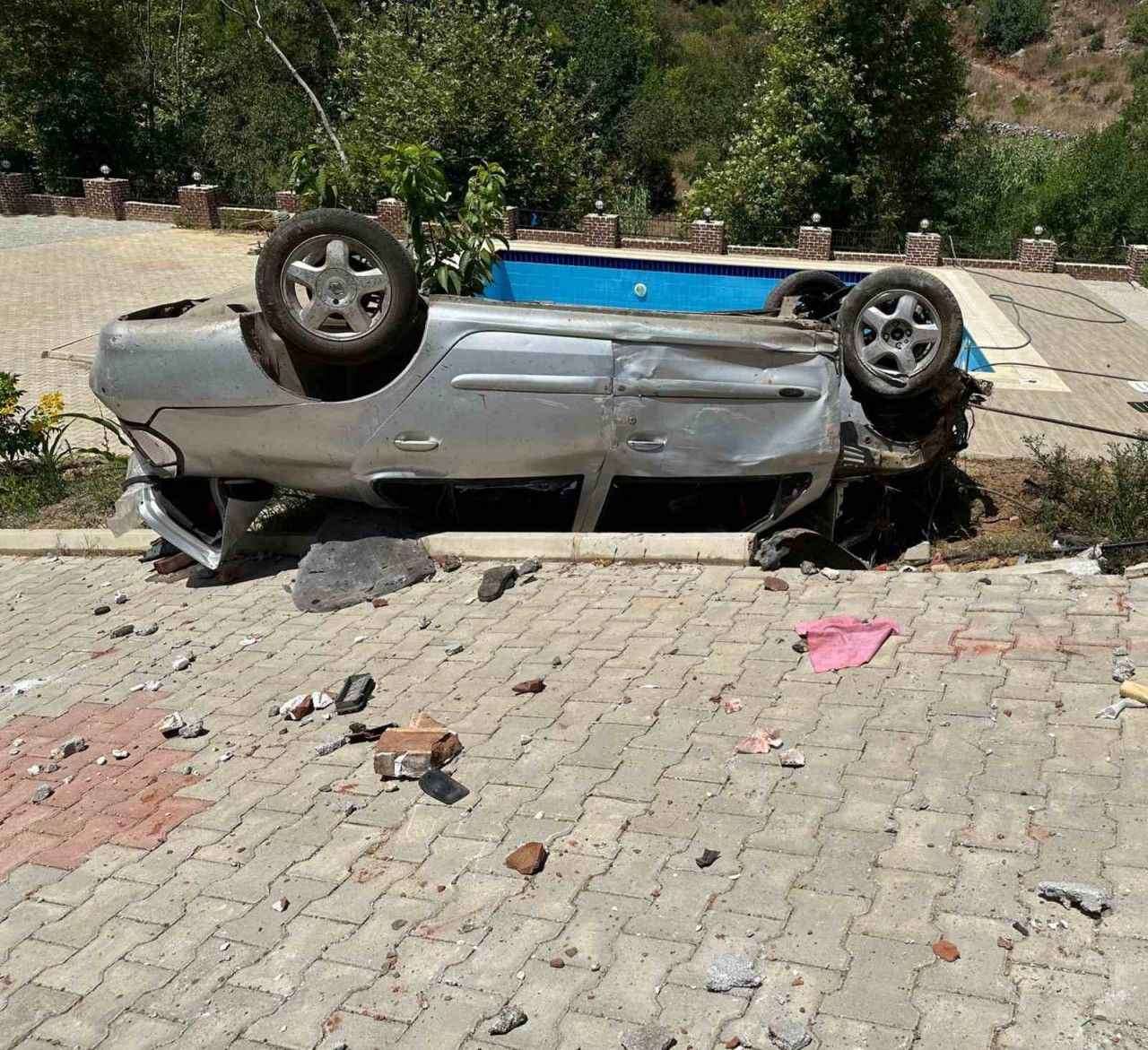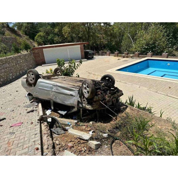 | Köpeğe çarpmamak için manevra yaptı, otomobil 10 metre yükseklikten bahçeye uçtu: 6 yaralı | |