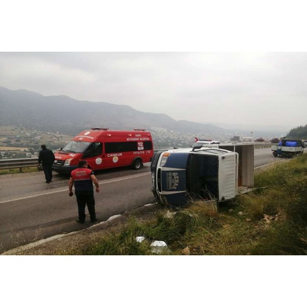 | Köpeğe çarpmamak için ani manevra yapan araç takla attı. 1 yaralı | |