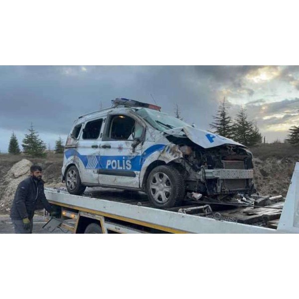 | Önüne çıkan köpeğe çarpmamak için manevra yapan polis aracı takla attı. İki polis yaralandı. | |